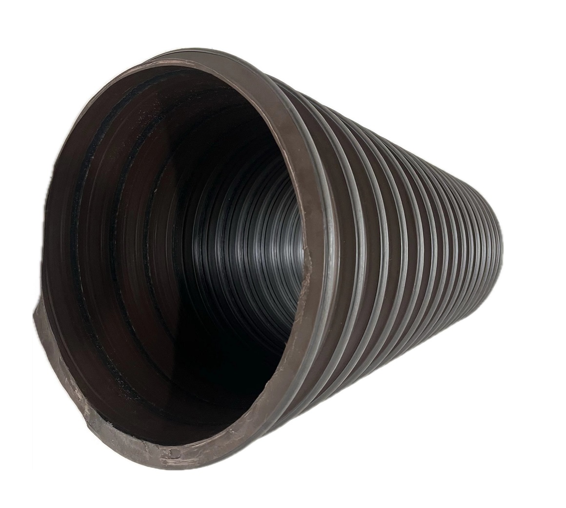 以玄武巖纖維和高密度聚烯烴作為基體材料,經纏繞架與管材管壁加工制成內壁平直光滑,外壁呈螺旋立筋骨架的高環剛度、高韌性玄纖增強(CBFRT自檢防脫)塑料管。