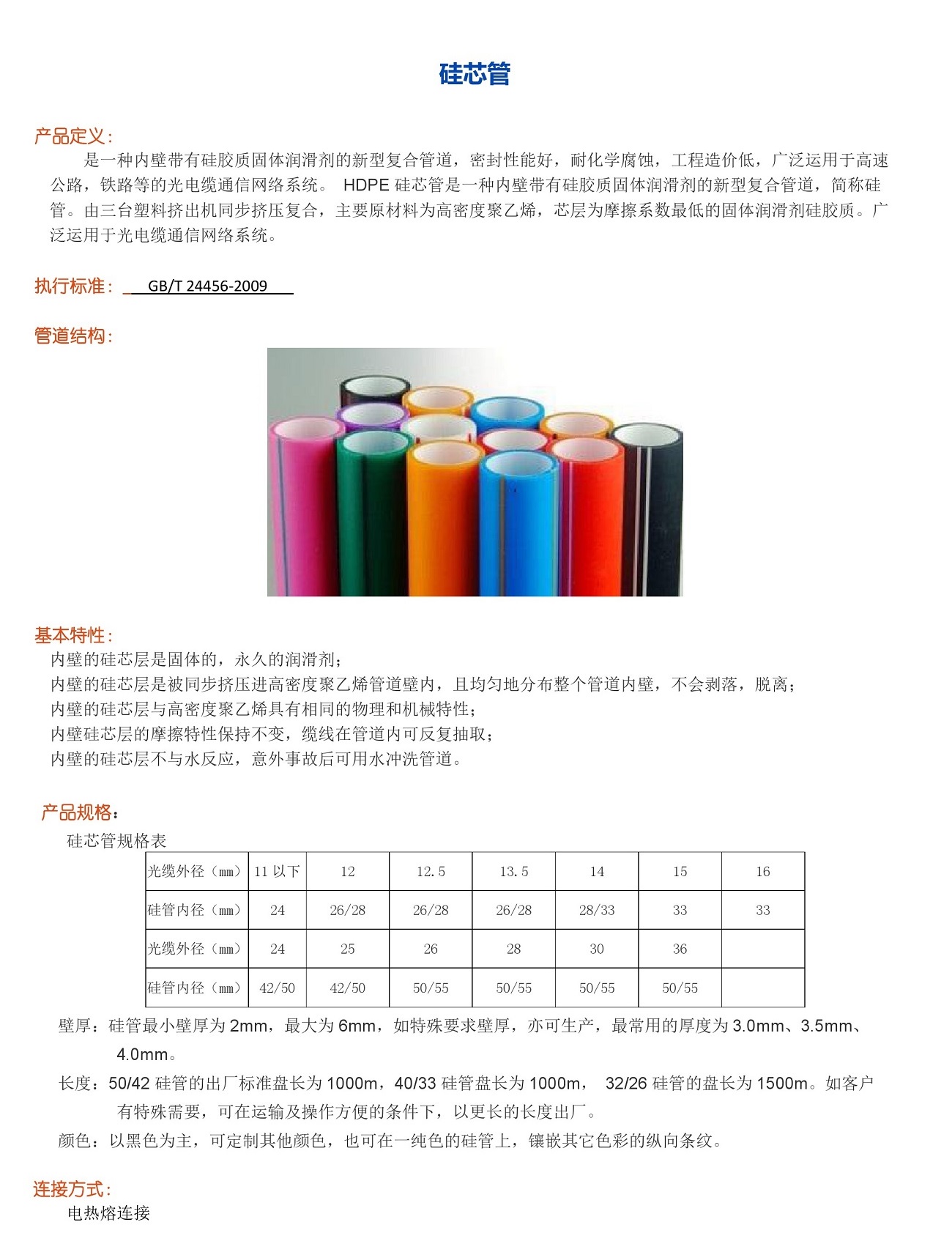 長度:50/42硅管的出廠標準盤長為1000m,40/33硅管盤長為1000m, 32/26硅管的盤長為1500m。如客戶